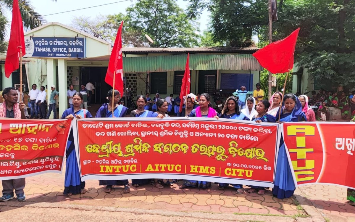 କେନ୍ଦ୍ରୀୟ ଶ୍ରମିକସଙ୍ଗଠନପକ୍ଷରୁ ବିକ୍ଷୋଭ ପ୍ରଦର୍ଶନ ଓ ବଡ଼ବିଲ ତହସିଲଦାରଙ୍କୁ ପ୍ରଧାନମନ୍ତ୍ରୀଙ୍କ ଉଦ୍ଦେଶ୍ୟରେ ଦାବିପତ୍ର ପ୍ରଦାନ।କେନ୍ଦୁଝର ଜିଲ୍ଲାର ଖଣିଜ କ୍ଷେତ୍ର ବଡ଼ବିଲ ପୌରାଞ୍ଚଳ ତଥା ବଡ଼ବିଲ ଥାନା ଅନ୍ତର୍ଗତ ରେ ବିଭିନ୍ନ କେନ୍ଦ୍ରୀୟ ଶ୍ରମିକ୍ ସଙ୍ଗଠନ ପକ୍ଷରୁ ଶତାଧିକ ସଂଖ୍ୟାରେ ପୁରୁଷ ଓ ମହିଳା ବିଭିନ୍ନ ସ୍ଲୋଗାନ ମାନ ଦେଇ ଏକ ବିଶାଳ ଶୋଭାଯାତ୍ରା ରେ ଆସି ବଡ଼ବିଲ ତହସିଲଦାରଙ୍କ କାର୍ଯ୍ୟାଳୟରେ ପହଞ୍ଚି ସତର ଦଫା ଦାବି ନେଇ ବିକ୍ଷୋଭ ପ୍ରଦର୍ଶନ କରିବା ସହ ଦେଶର ପ୍ରଧାନମନ୍ତ୍ରୀ ଙ୍କ ଉଦ୍ଦେଶ୍ୟରେ ଏକ ଦାବୀ ପତ୍ର ବଡ଼ବିଲ ତହସିଲଦାର ଶ୍ରୀ ରାକେଶ କୁମାର ପଣ୍ଡା ଙ୍କୁ ପ୍ରଦାନ୍ କରିଥିବା ଦେଖିବାକୁ ମିଳିଥିଲା।କେନ୍ଦୁଝର ଜିଲ୍ଲାରୁ ସରୋଜ କୁମାର ମହାପାତ୍ରଙ୍କ ରିପୋର୍ଟ