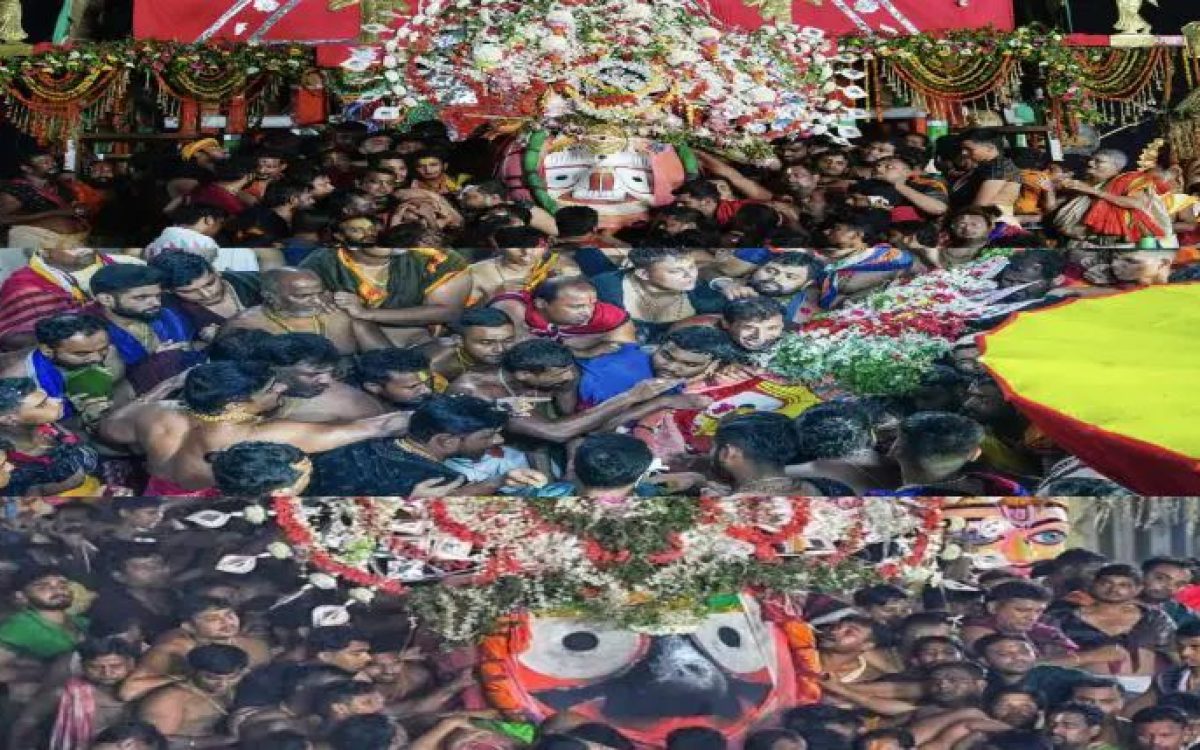 ପୂରୀ: ଶେଷ ହେଲା ନବଦିନ ବ୍ୟାପୀ ଘୋଷଯାତ୍ରା । ମନ୍ଦିର ବାହାରେ ସରିଲା ମହାପ୍ରଭୁଙ୍କ ଲୀଳା ଖେଳା । ନବଦିନାତ୍ମକ ଯାତ୍ରା ସାରି ନୀଳକନ୍ଦରକୁ ଫେରିଲେ ଚତୁର୍ଦ୍ଧାମୂରତୀ । ସଂଧ୍ୟା ଧୂପ ସରିବା ପରେ ଆରମ୍ଭ ହୋଇଥିଲା ଚତୁର୍ଦ୍ଧାମୂର୍ତ୍ତିଙ୍କ ପହଣ୍ଡି । ପ୍ରଥମେ ଗୋଟି ପହଣ୍ଡିରେ ଯାଇ ଶ୍ରୀମନ୍ଦିରକୁ ବିଜେ କରିଥିଲେ ସୂଦର୍ଶନ, ବଳଭଦ୍ର ଓ ସୁଭଦ୍ରା ।