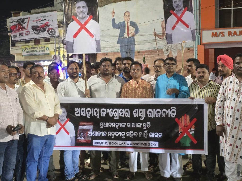 କଂଗ୍ରେସ ନେତା ତଥା ଲୋକ ସଭା ବିରୋଧୀ ଦଳ ନେତା ରାହୁଲ ଗାନ୍ଧୀ ଙ୍କ କୁଶ ପୁତ୍ତଳିକା ଦାହ କଲା ବିଜେପି