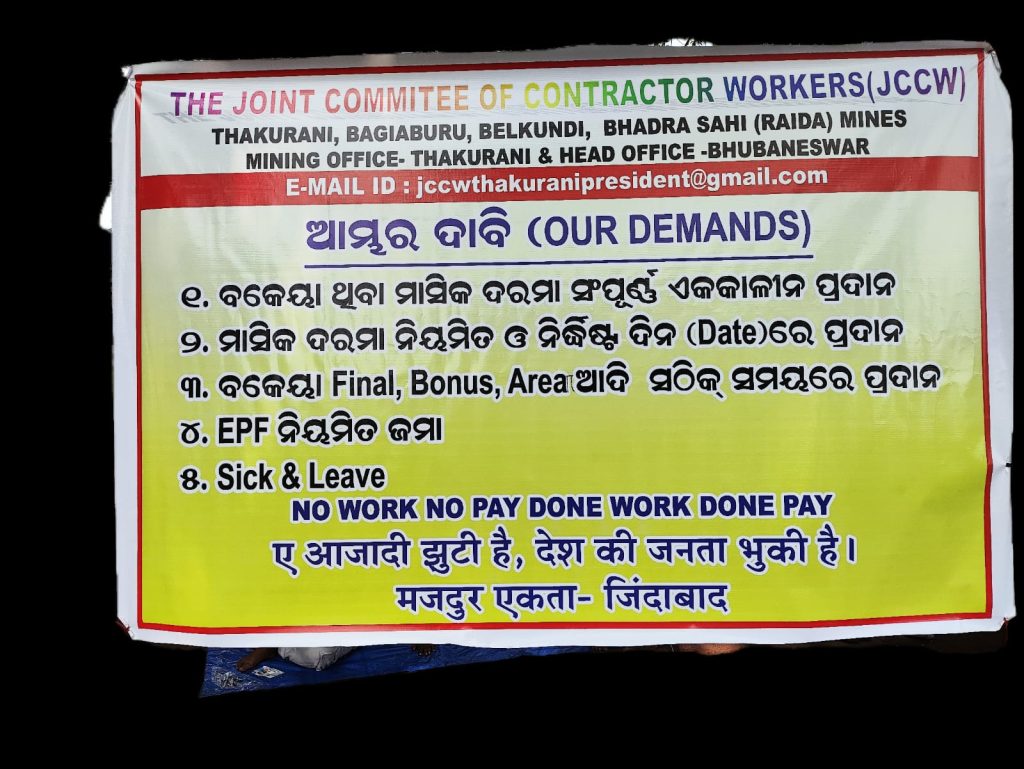 OMDC ଠିକା କର୍ମଚାରୀ ମାନଙ୍କ ର ଆତ୍ମାହୁତି ଚେତାବନୀ। ଏହିଭଳି ଅଭାବନୀୟ ଦୃଶ୍ୟ ଦେଖିବାକୁ ମିଳିଛି କେନ୍ଦୁଝର ଜିଲ୍ଲା ଯୋଡ଼ା ଖଣି ମଣ୍ଡଳ ଅନ୍ତର୍ଗତ ବଡ଼ବିଲ ପୌରାଞ୍ଚଳ ତଥା ବଡ଼ବିଲ ଥାନା ଅନ୍ତର୍ଗତ ଠାକୁରାଣୀ ଠାରେ। ଆଜି ବଡ଼ବିଲ ପୌରାଞ୍ଚଳ ତଥା ବଡ଼ବିଲ ଥାନା ଅନ୍ତର୍ଗତ ଠାକୁରାଣୀ ଠାରେ ଥିବା OMDC କର୍ମଚାରୀଙ୍କ ପକ୍ଷରୁ ଆତ୍ମାହୁତି ଚେତାବନୀ ଦିଆଯାଇଛି। ଯାହାକି ସୂଚନା ରହିଛି ଏହି OMDC ଖଣିରେ ଠିକା ସଂସ୍ଥା ଅଧୀନରେ କାର୍ଯ୍ୟରତ କର୍ମଚାରୀଙ୍କ ବିଗତ ନଅମାସ ରୁ ଉର୍ଦ୍ଧ ହେଲା ଦରମା ଦେଇନଥିବା ଅଭିଯୋଗ କରିଛନ୍ତି କର୍ମଚାରୀ, ବିଗତ ଦିନରେ OMDC କମ୍ପାନୀର ବିଯିନେସ ହେଡ୍ ଙ୍କୁ କର୍ମଚାରୀ ମାନେ ବଡ଼ବିଲ ଉତ୍ସବ ପଡ଼ିଆ ନିକଟରେ ଥିବା OMDC ଗେଷ୍ଟ ହାଉସ ଠାରେ ସମୂହ ଏକତ୍ରିତ ହୋଇ ଘେରିଥିଲେ ଓ ଅତିଶିଘ୍ର ସେମାନଙ୍କ ବକେୟା ଦରମା କମ୍ପାନୀ ପକ୍ଷରୁ ପ୍ରଦାନ କରାନଗଲେ ସେମାନେ ଆତ୍ମାହୁତି କରିବା ପାଇଁ ଏକ ପ୍ରକାରର ବାଧ୍ୟ ହେବେ ଓ ଏଥିପାଇଁ ସରକାର ଓ କମ୍ପାନୀ କତୃପକ୍ଷ ଦାୟୀ ରହିବେ ବୋଲି ଚେତାବନୀ ଦେଇଥିଲେ। ପରବର୍ତ୍ତୀ ସମୟରେ ଏହି କମ୍ପାନୀ ପକ୍ଷରୁ ମାତ୍ର ଦୁଇମାସ ର ଦରମା ପ୍ରଦାନ କରାଯାଇଥିବା ବେଳେ ପୁଣି କର୍ମଚାରୀଙ୍କ ଦରମା ପ୍ରଦାନ କରୁ ନଥିବା ବେଳେ ଏବେ କୁ ମିଶାଇ ପୁଣି ଦଶମାସ ର ଦରମା ବକେୟା ରହିଲାଣି, ଯାହାକୁ ନେଇ ପୁଣି OMDC କମ୍ପାନୀ ବିରୋଧରେ ରଣ ହୁଙ୍କାର ଦେବା ସହ, ଓ ଏବେ ରାଜ୍ୟରେ ନିଜ ଜିଲ୍ଲାର ମୁଖ୍ୟମନ୍ତ୍ରୀ ଥିବାବେଳେ କଣ ପାଇଁ ତାଙ୍କ ପ୍ରତି ଏ ଅନ୍ୟାୟ କରାଯାଇଛି ବୋଲି ପ୍ରଶ୍ନ କରିଛନ୍ତି। ଦରକାର ପଡିଲେ ନିଜେ ମରିବା ସହ ନିଜ ନିଜ ପରିବାରକୁ ନେଇ ଜୀବନ ହାରିବାକୁ ଚେତାବନୀ ଦେଇଛନ୍ତି ଏହି କର୍ମଚାରୀ ମାନେ ଓ ଏଥି ପାଇଁ କମ୍ପାନୀ କତୃପକ୍ଷ ଏବଂ ସରକାର ଦାୟୀ ରହିବେ ବୋଲି କହିଛନ୍ତି ।କେନ୍ଦୁଝର ଜିଲ୍ଲାରୁ ସରୋଜ କୁମାର ମହାପାତ୍ରଙ୍କ ରିପୋର୍ଟ