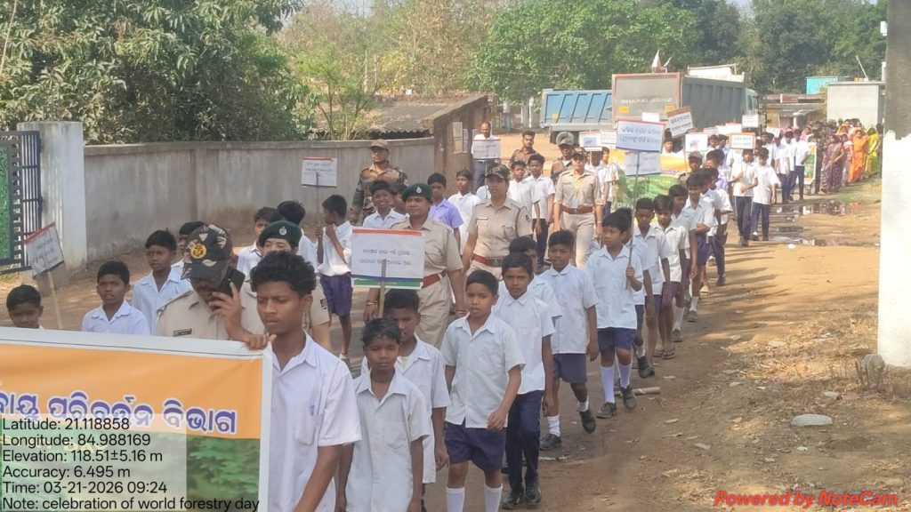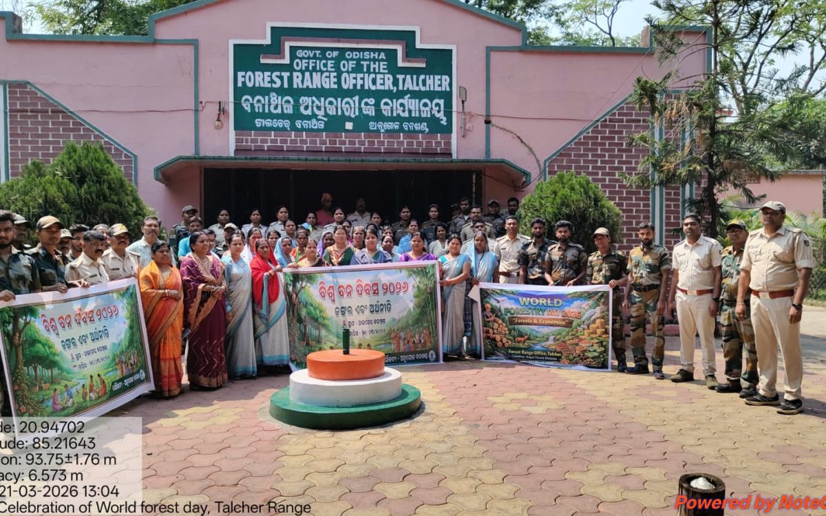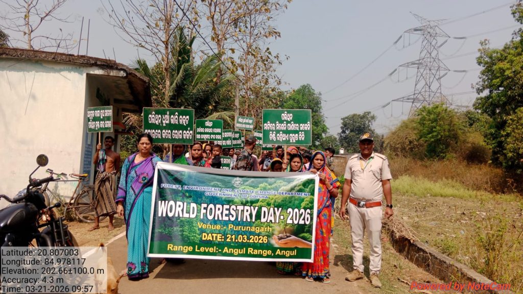 Angul – On the occasion of World Forestry Day 2026, the Division Forest Office, Angul successfully organized an official programme along with a commemorative awareness rally today. The rally was led by the Range Officer and saw active participation from GPLF Self-Help Group members, VSS President, school students, teachers, Samiti members, Sarpanch, and all forest staff, squads, and Gajamitras.