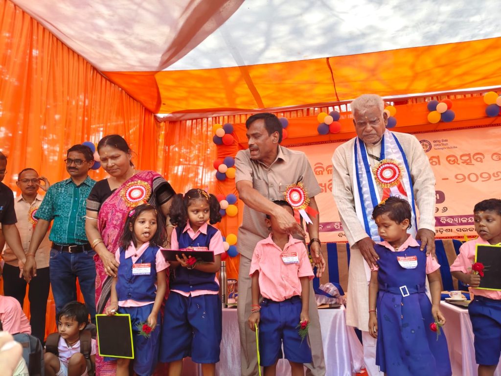 ସମ୍ମାନୀତ ଅତିଥି ଭାବେ ମାନ୍ୟବର ଛେଣ୍ଡିପଦା ବିଧାୟକ ଶ୍ରୀ ଅଗସ୍ତି ବେହେରା ଯୋଗ ଦେଇ ସମସ୍ତ ଅଭିଭାବକମାନଙ୍କୁ ସେମାନଙ୍କ ଶିଶୁଙ୍କୁ ନିୟମିତ ପାଠ ପଢିବା ପାଇଁ ବିଦ୍ୟାଳୟକୁ ପଠାଇବାକୁ ଅନୁରୋଧ କରିଥିଲେ । ଅତିଥିମାନେ ଶିଶୁବାଟିକା ଓ ପ୍ରଥମ ଶ୍ରେଣୀ ଛାତ୍ର ଛାତ୍ରୀମାନଙ୍କୁ ଗୋଲାପ ଫୁଲ, ରସଗୋଲା, ପାଠ୍ୟୋପକରଣ ସହିତ ସ୍କୁଲ ବ୍ୟାଗ ପ୍ରଦାନ କରି ଖଡି ଛୁଆଁଇ ଥିଲେ । ଏହାପରେ ଅତିଥିମାନେ ପ୍ରସ୍ତୁତ କରାଯାଇଥିବା ମୌଳିକ ସଂଖ୍ୟା ଜ୍ଞାନ ଷ୍ଟଲ, ମୌଳିକ ସାକ୍ଷରତା ଷ୍ଟଲ ଓ ସୃଜନାତ୍ମକ ଷ୍ଟଲଗୁଡିକୁ ବୁଲି ଦେଖୁଥିଲେ । ଜାତୀୟ ଶିକ୍ଷା ନୀତି ୨୦୨୦ ଅନୁସାରେ ଜିଲ୍ଲାର ସମସ୍ତ ପ୍ରାଥମିକ ବିଦ୍ୟାଳୟ ଗୁଡିକରେ ଶିଶୁବାଟିକା ଖୋଲିବା ସହ ୪ବର୍ଷ ୭ ମାସରୁ ୫ ବର୍ଷ ୭ ମାସ ହୋଇଥିବା ଶିଶୁମାନେ ଶିଶୁବାଟିକା ଶ୍ରେଣୀରେ ଏବଂ ୫ ବର୍ଷ ୭ ମାସରୁ ଅଧିକ ହୋଇଥିବା ଶିଶୁମାନେ ପ୍ରଥମ ଶ୍ରେଣୀରେ ନାମ ଲେଖାଇବେ ।
