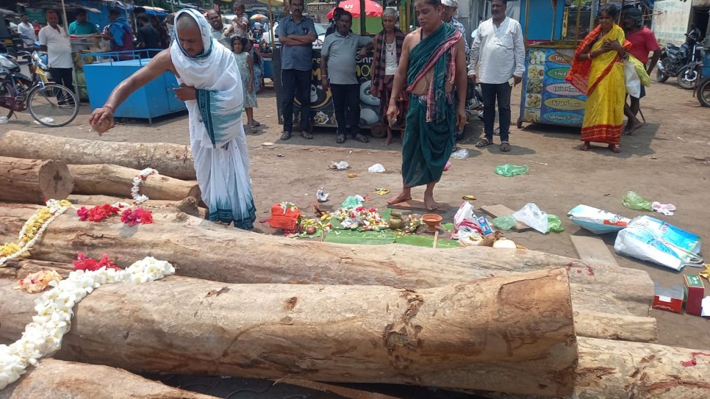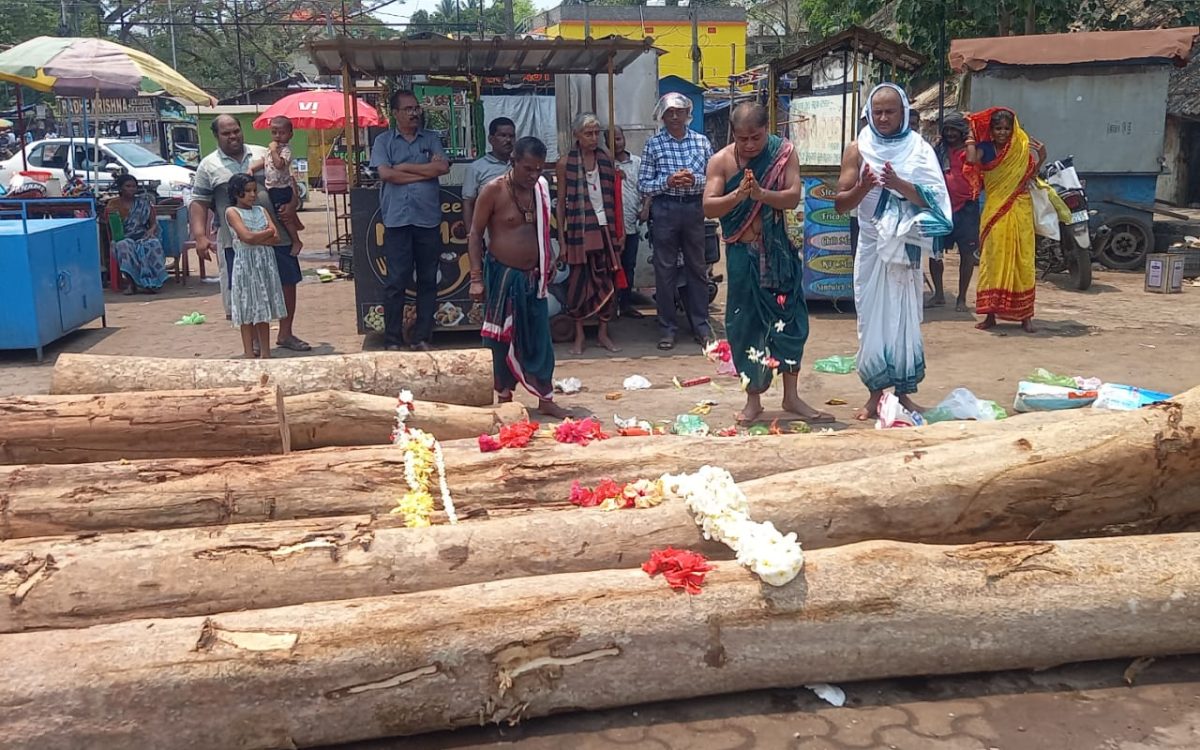 ରଥଖଳାରେ ପୂଜାଅର୍ଚ୍ଚନା କରାଯାଇ ୧୧:୧୬ ସମୟରେ ଆଜ୍ଞାମାଳ ରଥ କାଠରେ ଲାଗିକରାଗଲା